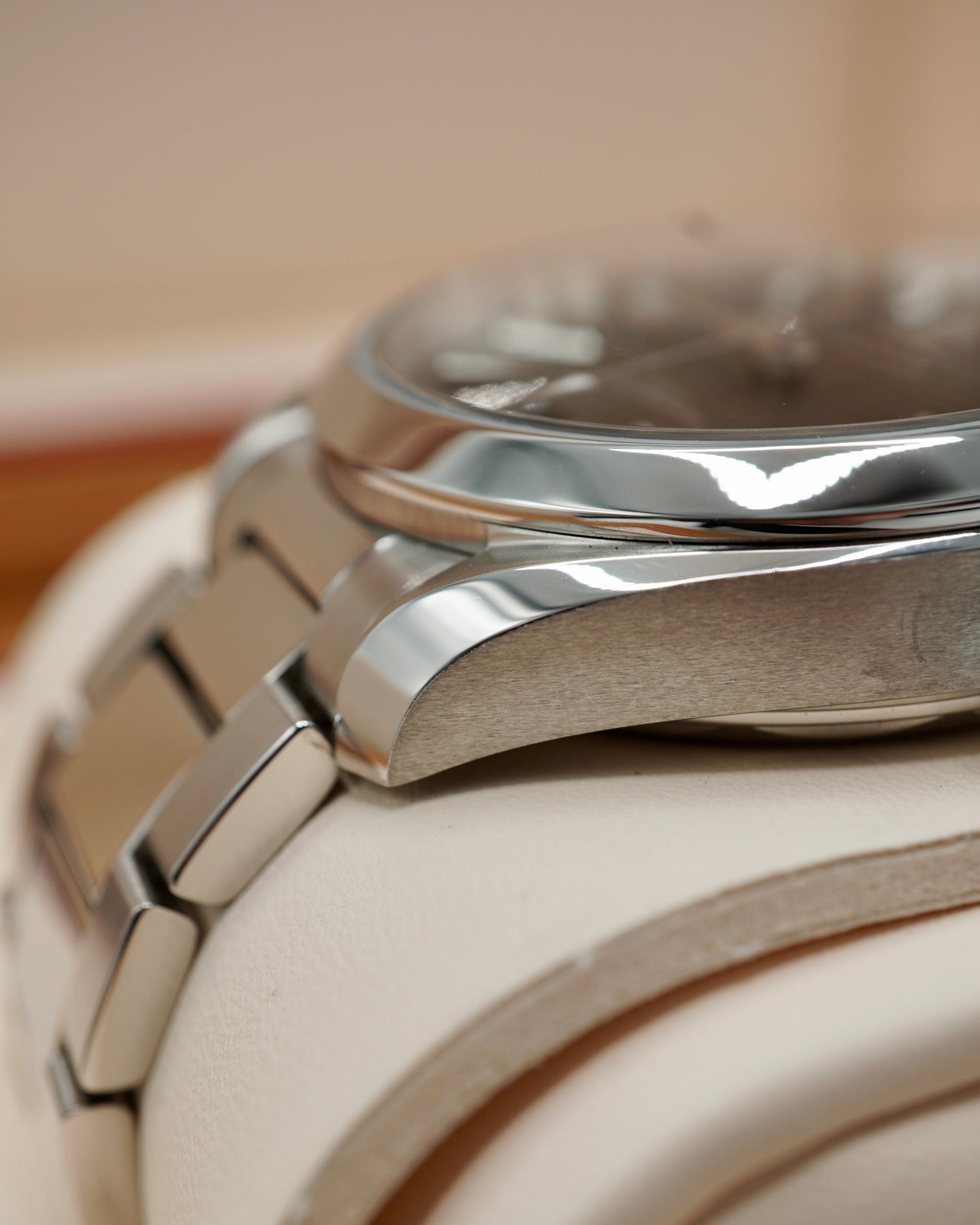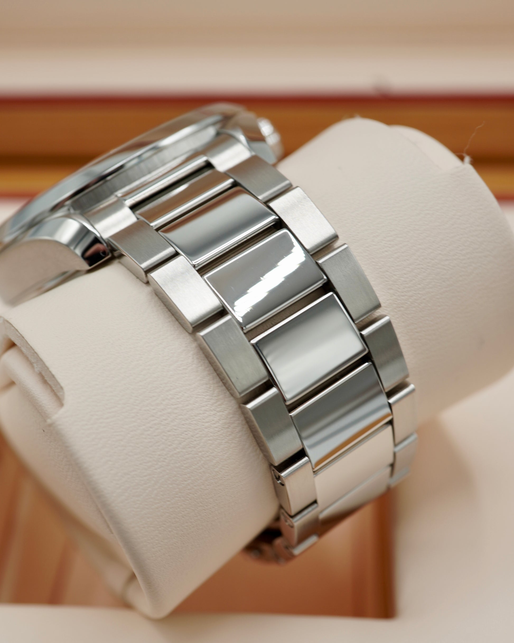 This watch includes the outer and inner boxes, warranty card, master chronometer card, pictogram card, swing tag, original receipt and spare links