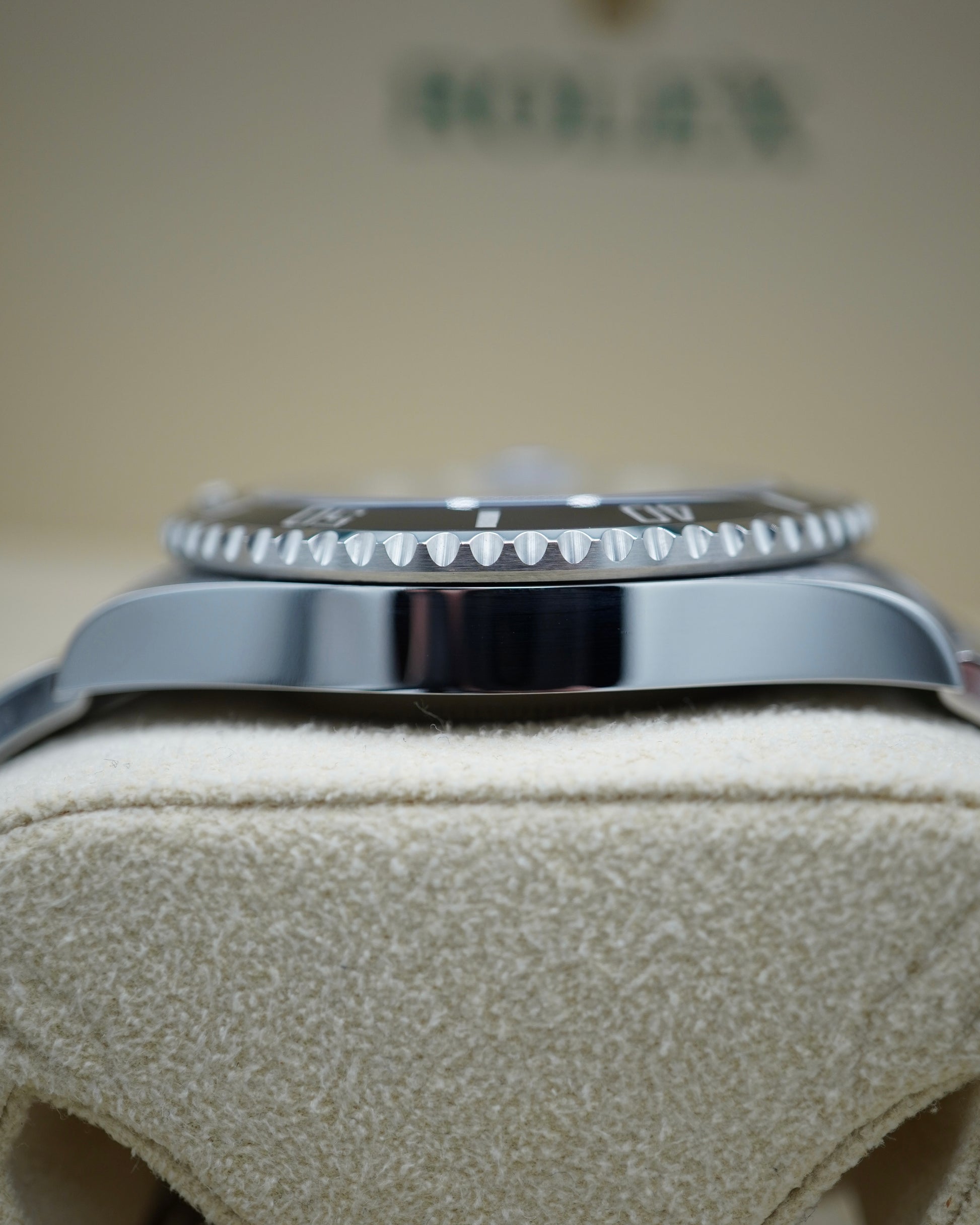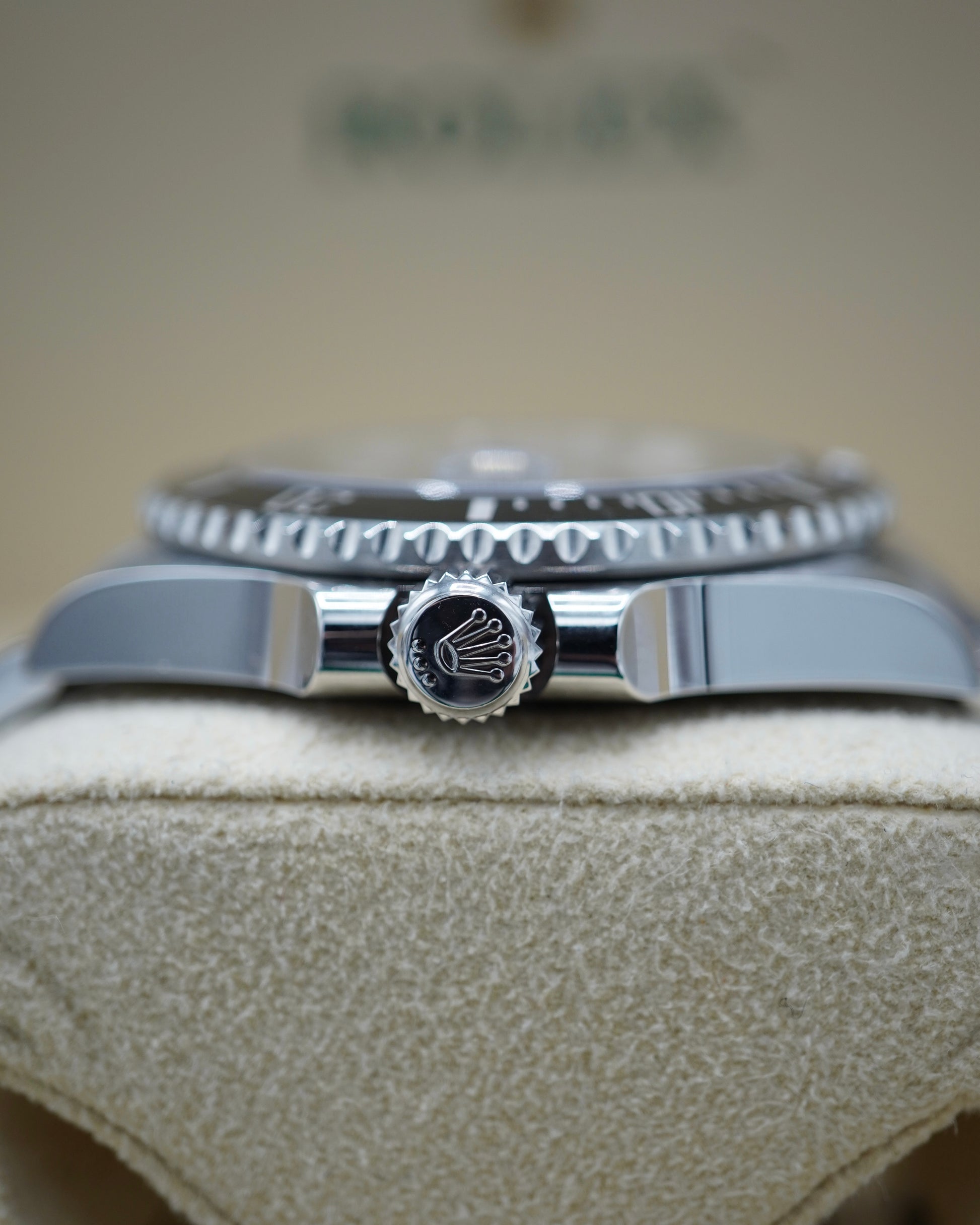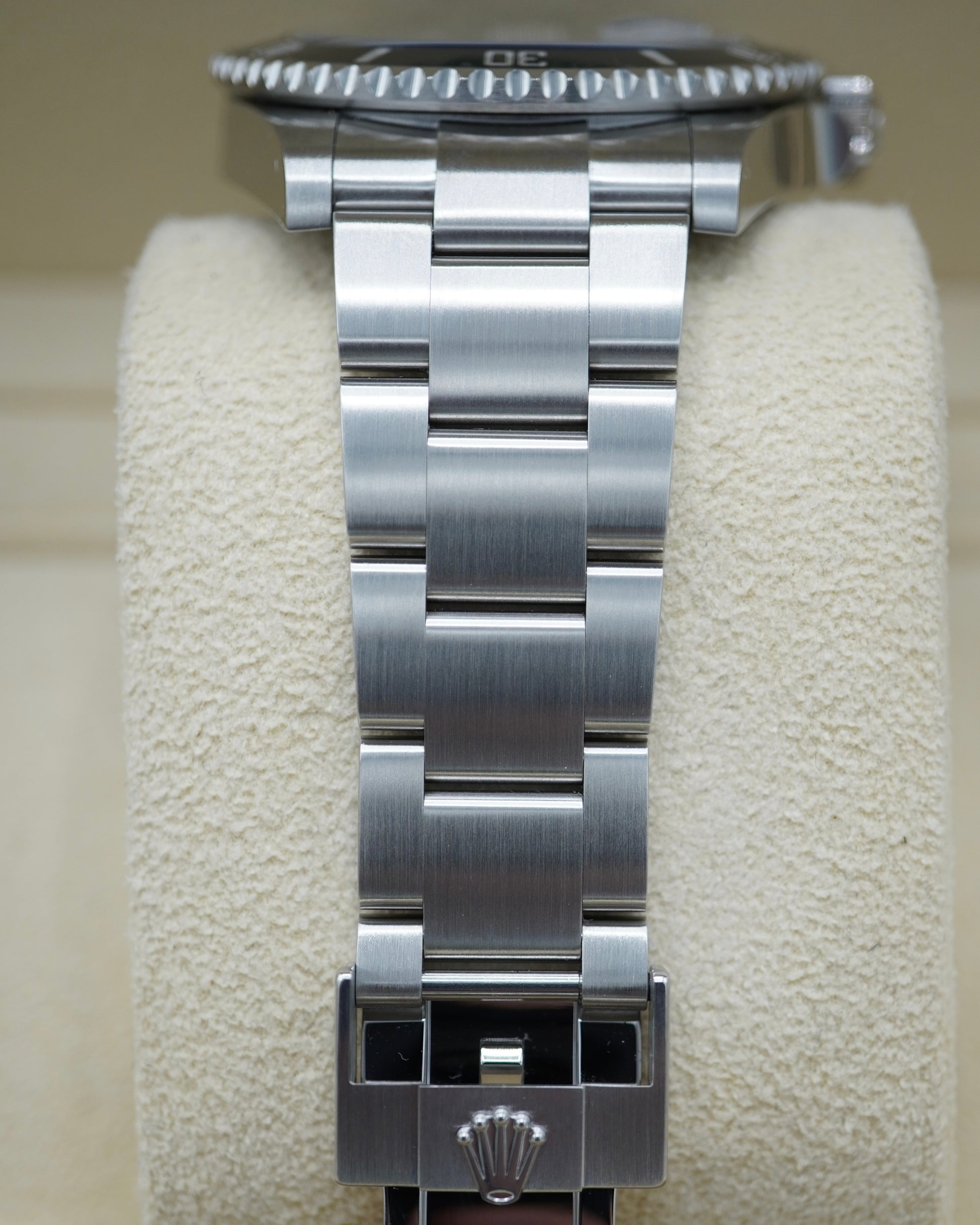 This watch is in near mint condition with no noticeable signs of wear. The crystal and bezel, bracelet, clasp, and case are in flawless condition